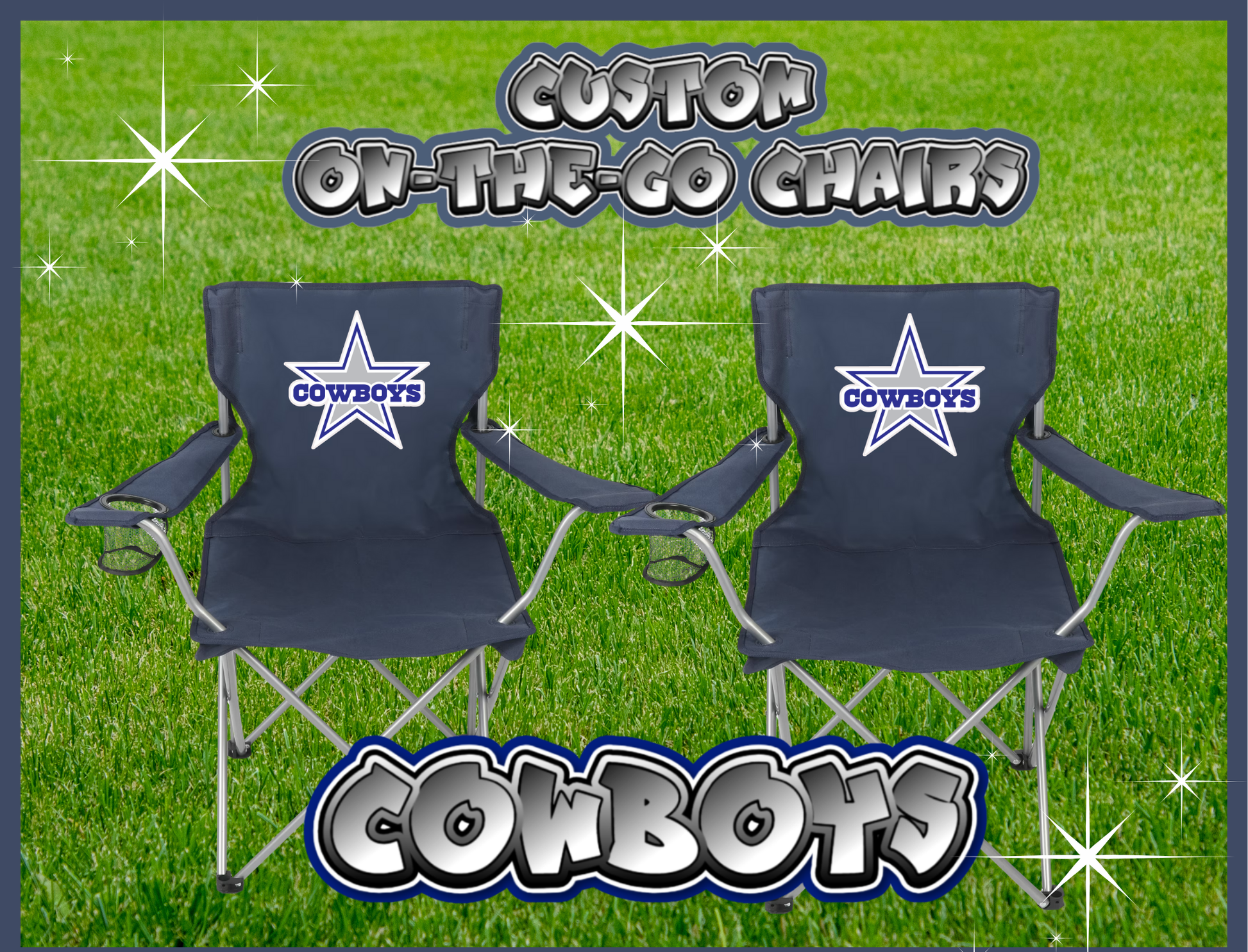 Show your Dallas pride wherever you go with these Custom Cowboy Chairs — perfect for tailgates, game days, or backyard kickbacks. Bold, comfortable, and built to hold up to 250 lbs, it’s your go-to seat for reppin' Dallas in style. Grab a set so every fan in your crew can sit like a Cowboy! (Set=2 chairs)